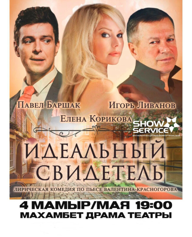 «Идеальный свидетель» Пьеса написана председателем Гильдии драматургов Петербурга Валентином Красногоровым. Его пьесы ставили такие мэтры, как Лев Додин, Георгий Товстоногов, Роман Виктюк, Владимир Андреев. «Идеальный свидетель» - это головокружительная история о страсти, любви и верности, о метаморфозах наших чувств, неожиданных поворотах в жизни, о том, что счастье нельзя запланировать, оно может только случится, иногда весьма неожиданно!. Тонкая, трогательная, лирическая комедия. В спектакле заняты звезды российского театра и кино.