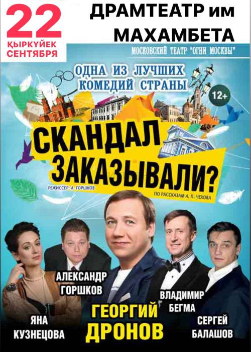 Как известно скандал не возникает на пустом месте, это множество событий, переплетённых в один узел,так и в этом спектакле десять лучших чеховских рассказов, десять анекдотов, десять скандальных историй предстанут в живую, отдохните и посмейтесь от души.