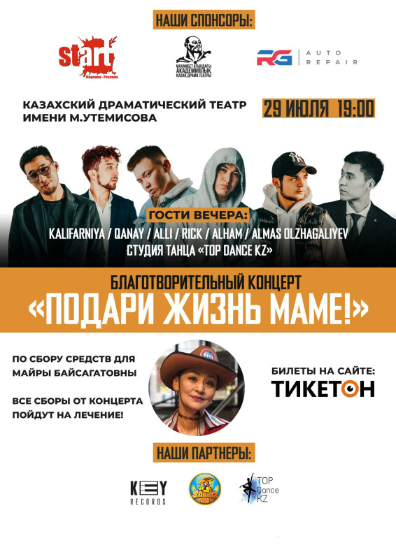 Благотворительный концерт на обследование и лечение за границей Майры Байсагатовны. Диагноз: Боковой амиотрофический склероз. Все сборы от концерта пойдут на лечение.