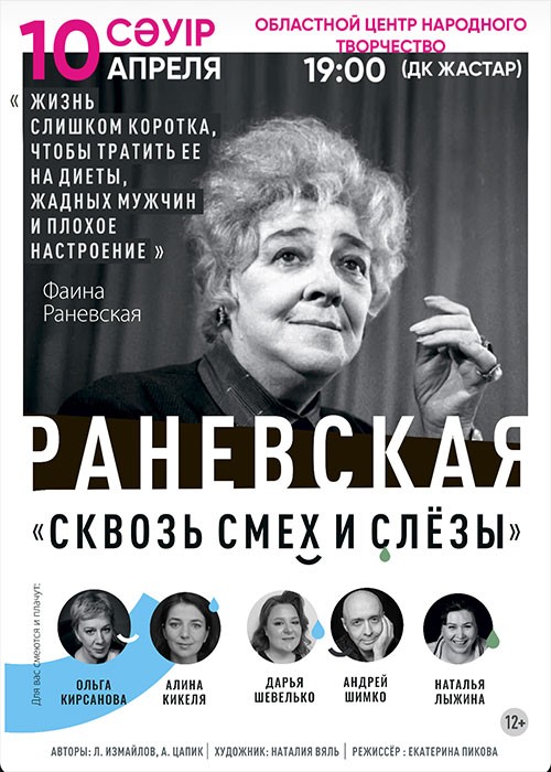Два часа легкого, близкого и понятного юмора, находящего теплый отклик внутри. Два часа исповеди с налетом драмы, которая подается в дуэте с филигранной иронией над собой и всем миром. Два часа не заканчивающегося смеха и единогласных аплодисментов до, во время и после. Два часа гения великой Фаины Раневской!
