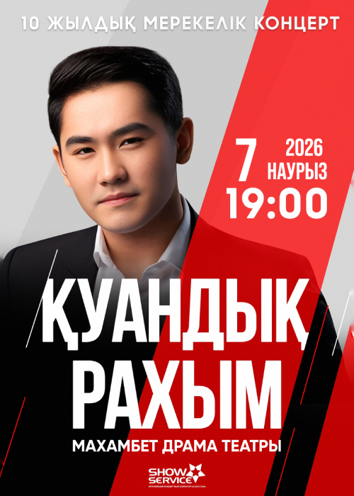 Дорогие друзья, приглашаем вас на долгожданный вечер музыки и души! Один из самых ярких и любимых артистов казахстанской эстрады, Куандык Рахым, выступит с большим сольным концертом в вашем городе!