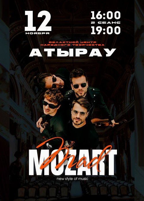 MAD MOZART – Это лучшее симфо шоу в самом драйвовом его исполнении!Смесь величайших мировых хитов – от классической и этнической музыки, до рока и поп.Эти ребята играют на инструментах, танцуя, прыгая и устраивая настоящее шоу на сцене. Живой звук с сумашедшими барабанами и невероятная энергетика. Это ураган классической музыки и мировых хитов. Популярные мелодии, дикие рифы, уникальные аранжировки представляют собой переосмысление современного искусства. Международная группа профессиональных артистов подарит вам невероятную атмосферу безумия.Усидеть на месте будет невозможно!