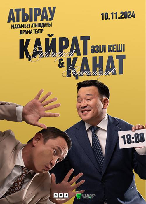 Если Вы видели выступления Каната Альжапбарова и Кайрата Адильгерея только в жанре юмористического монолога, в этот вечер перед вами предстанет возможность насладиться их весёлыми постановками.