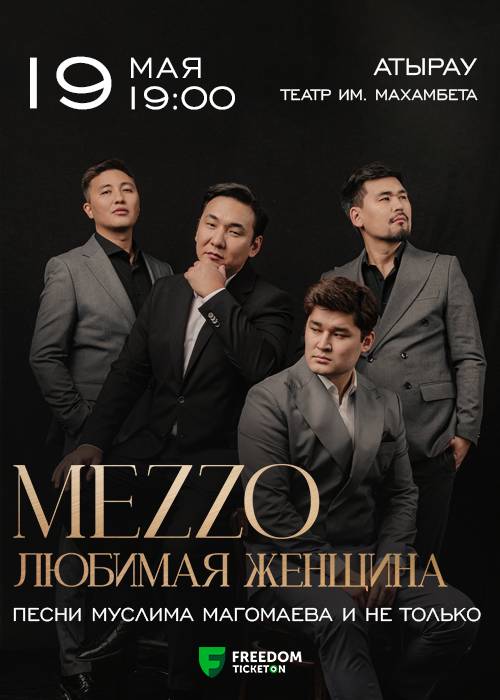 Группа Mezzo представляет новый концертный тур по Казахстану «Любимая женщина», вдохновленный весенним настроением и посвященный творчеству великого азербайджанского и советского певца и композитора Муслима Магомаева. В рамках программы прозвучат легендарные шлягеры мэтра, а также другие популярные композиции в уникальной авторской интерпретации солистов Mezzo.