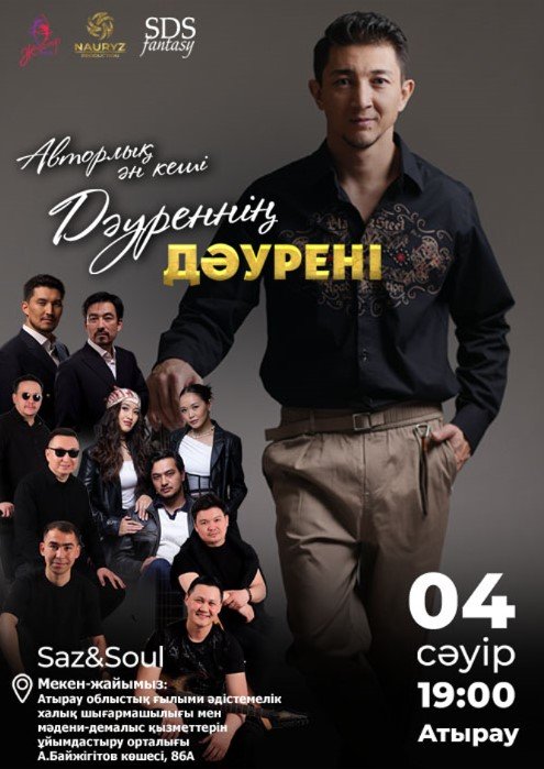 Актер, режиссер, Қазақстанның еңбек сіңірген қайраткері Дәурен Серғазиннің авторлық әндері шырқалатын жеке шығармашылық кеші...