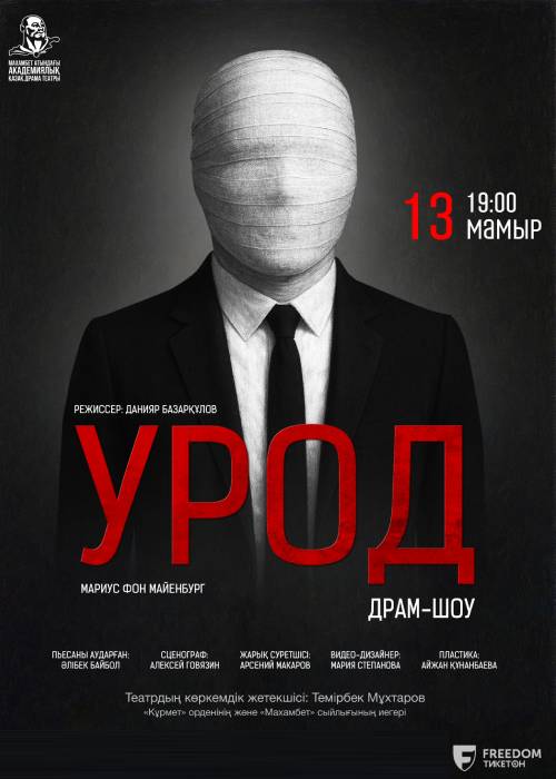 Неміс драматургы М. Майенбургтың «Урод» пьесасының негізінде сахналанған қойылымында түрсіз, ұсқынсыз кейіпкер бетіне ота жасатып, әдемі болып, ақша мен мансапқа ие болып, бәрінің алдында биікте жүруді көздейді. Дәрігерге мол ақша ұсынып мақсатына жетсе де, кейін бұл ісіне өкініп, бұрынғы бетін қайтаруға жанталасады. Адам өзінің адами құндылығын жоғалтқанда ешқандай жетістікке жете алмайтынын оқиға дәлелдейді.