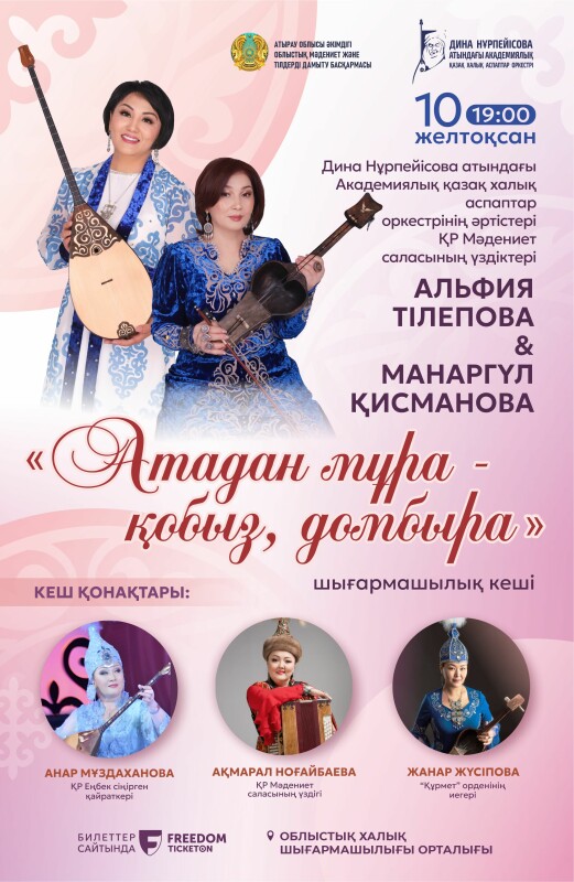 Өтетін орны: Атырау қ., Облыстық халық шығармашылығы (Айнаш Байжігітова 86 А)