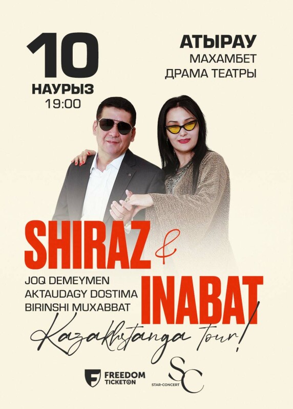Шыраз бен Инабат Атырау қаласында жеке концертін өткізбекші.