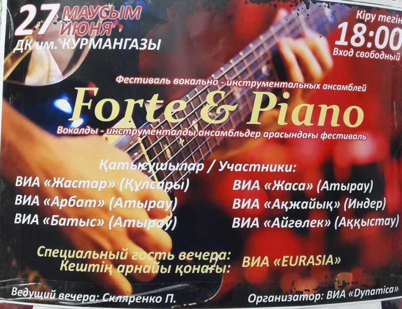 Приглашаем всех жителей и гостей города Атырау, на вокально-инструментальный фестиваль , который пройдёт 27 июня в ДК им Курмангазы при участии ВИА "Жастар", ВИА "Арбат", ВИА"Батыс", ВИА"жаса", ВИА"Акжайык", ВИА"Айголек".