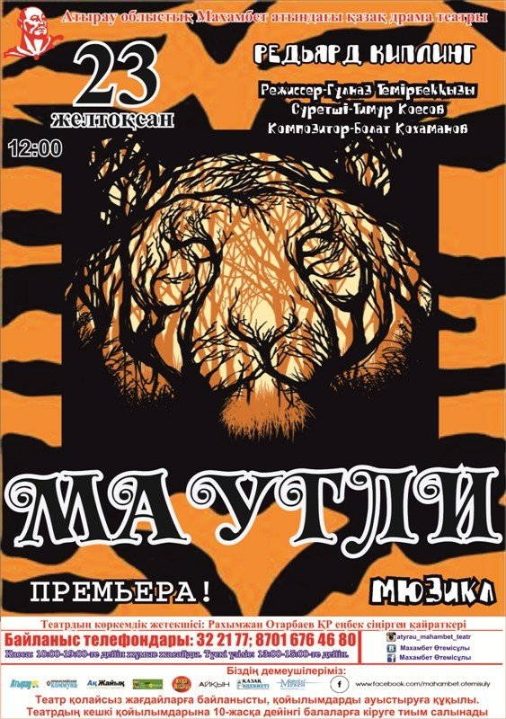 23 декабря в Драматическом театре имени Махамбета Утемисова состоится премьера мюзикла "МАУГЛИ". Начало в 17:00ч