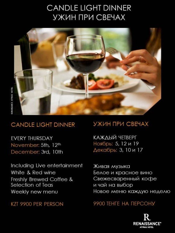 Проведите романтический вечер со второй половинкой в нашем ресторане Silk #Renotels #Atyrau
